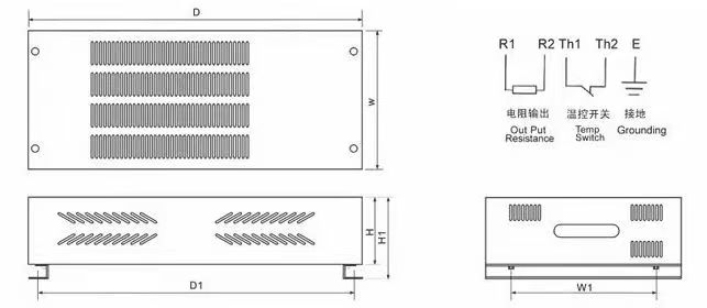 產品尺寸表2:(內置螺紋電阻器、散熱風機,接線處外置).