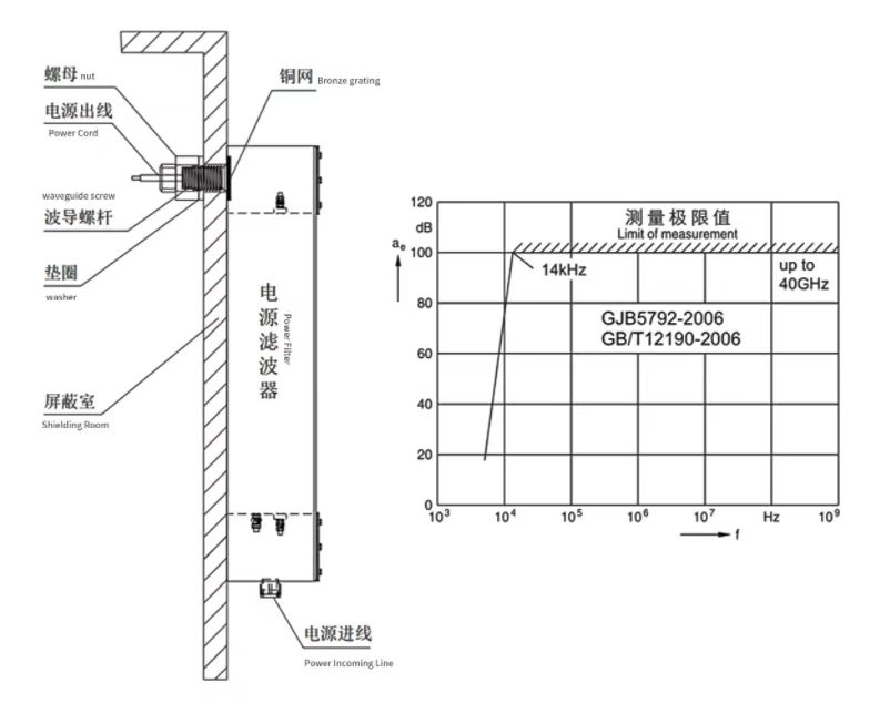 ⑥屏蔽效能:B級 ≥100dB ,150KHz~10GHz;